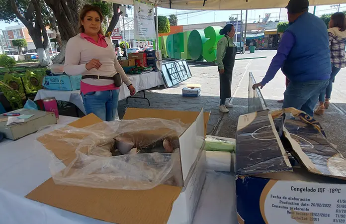 Gran respuesta por parte de la ciudadanía registra el puesto de venta de productos del mar que instala cada viernes el Sistema Municipal DIF de Soledad en la plaza principal durante la temporada de Cuaresma.