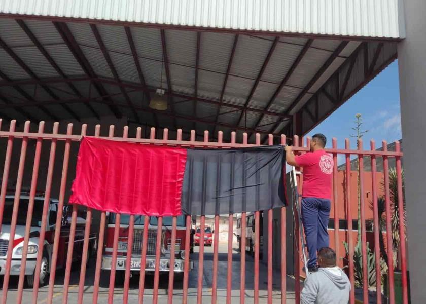 Elementos del Cuerpo de Bomberos entraron en trabajo bajo protesta con banderas rojinegras, por falta de pago de sueldos y prestaciones.