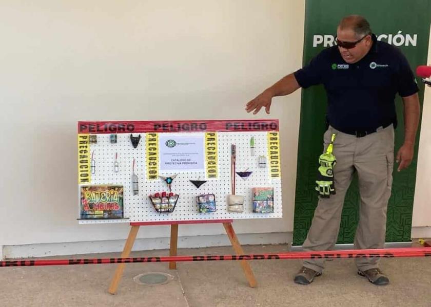 Con sandías, la coordinación Estatal de Protección Civil presentó pruebas de estallido para demostrar el alcance de la peligrosidad de la pirotecnia prohibida, y la facilidad con al que se pueden producir amputaciones o hasta de la muerte por la acción de un cohete peligroso.