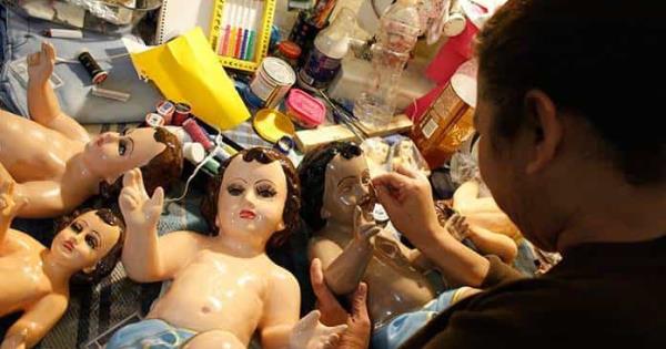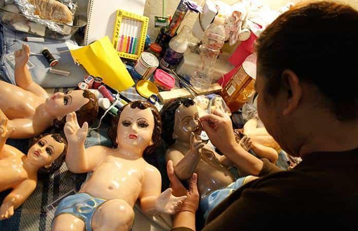 Ya que, dijo, reciben niño Dios de distintos tipos de color y se debe buscar la tonalidad de la figura original, además de llevar a cabo la colocación de pestañas y modelado del cabello.