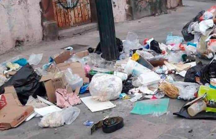 Como cada tercer día, en una esquina de la Colonia Industrial Aviación, amanece casi media tonelada de basura regada en una banqueta.