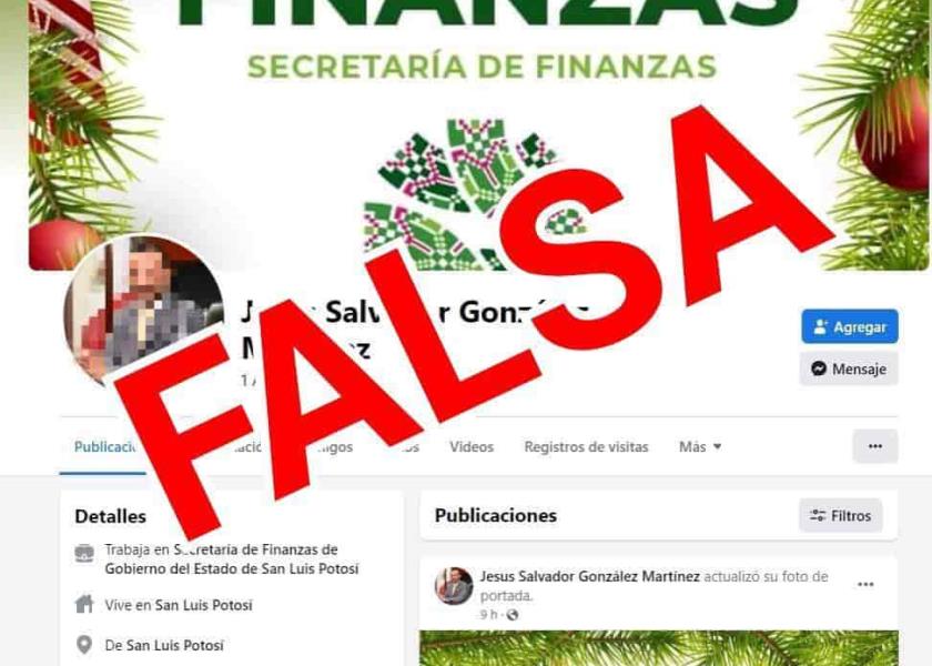 De nueva cuenta, en la red social Facebook fue creado un perfil personal falso del secretario de Finanzas de Gobierno del Estado, Jesús Salvador González Martínez, por el que intentan contactar a presidentas y presidentes municipales para extorsionarlos o cometer fraudes financieros.