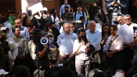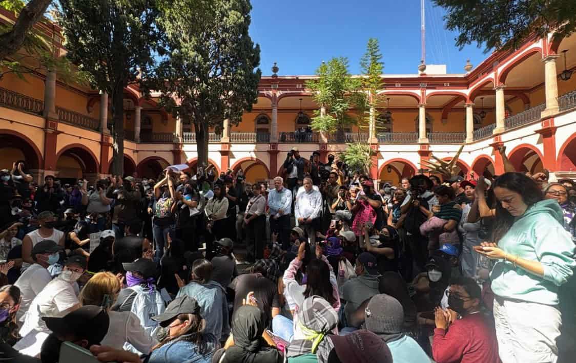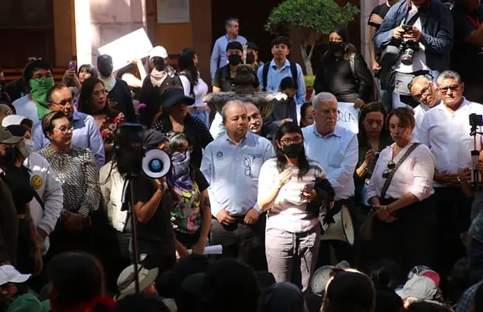 En Plaza de Armas, la multitud pidió también la renuncia de la abogada general y denunció la negligencia institucional. Una mujer que se presentó como exdocente tomó la palabra para señalar a Cynthia Valle Meade, titular de la Secretaría de Difusión Cultural, por presunto abuso de poder. Su voz tembló al inicio, pero fue recibida por un aplauso largo, de esos que suenan a respaldo y a cansancio acumulado.