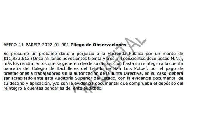 El total de observaciones se completa con una por 119 mil 699 pesos por aportaciones al fondo de ahorro de trabajadores no sindicalizados, pues el beneficio es exclusivo para personal agremiado.