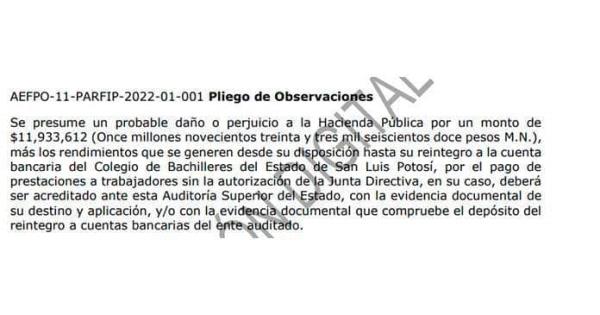 El año pasado, el Colegio de Bachilleres en San Luis potosí (Cobach), no estableció claramente el destino de 16.8 millones de pesos de sus ingresos, además de que destinó otros 11.9 millones de pesos a beneficios laborales a directivos, sin que hubiera una autorización de su junta directiva. En total, el Instituto de Fiscalización Superior del Estado (IFSE) detectó anomalías por 28.8 millones de pesos en la cuenta pública de esa institución educativa.