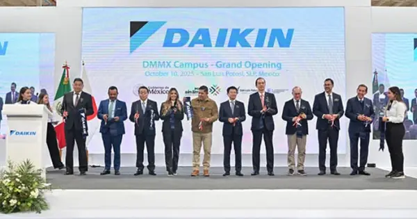 Ricardo Gallardo Cardona, gobernador de San Luis Potosí, encabezó la apertura del nuevo Complejo Daikin Manufacturing, proyecto de la empresa japonesa, fabricante de aires acondicionados y sistemas de refrigeración, con el que invirtió en el estado 310 millones de dólares, lo que generará más de 3 mil empleos directos para las y los potosinos, constatando, así, el importante avance que la entidad mantiene en su economía y la inversión industrial.
