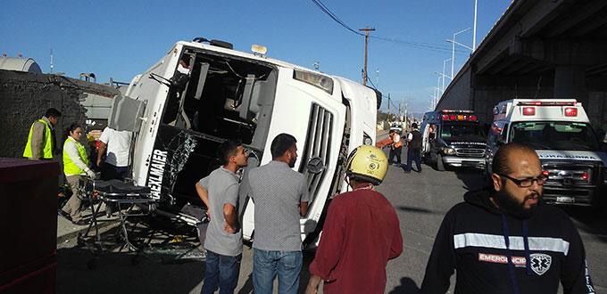 Antier, el conductor de un camión de personal que trasladaba a decenas de empleados de la referida compañía por el Periférico Norte, fue embestido por un ferrocarril debido a que presuntamente el chofer de la unidad intentó ganarle el paso.