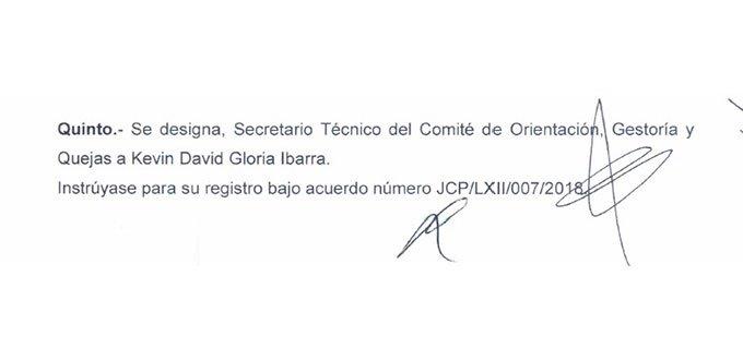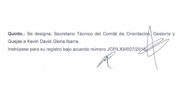 El ahora ex funcionario fue nombrado secretario técnico del mencionado comité en la sesión de la Junta de Coordinación política, a la que pertenece su cuñada, celebrada el pasado 26 de abril.