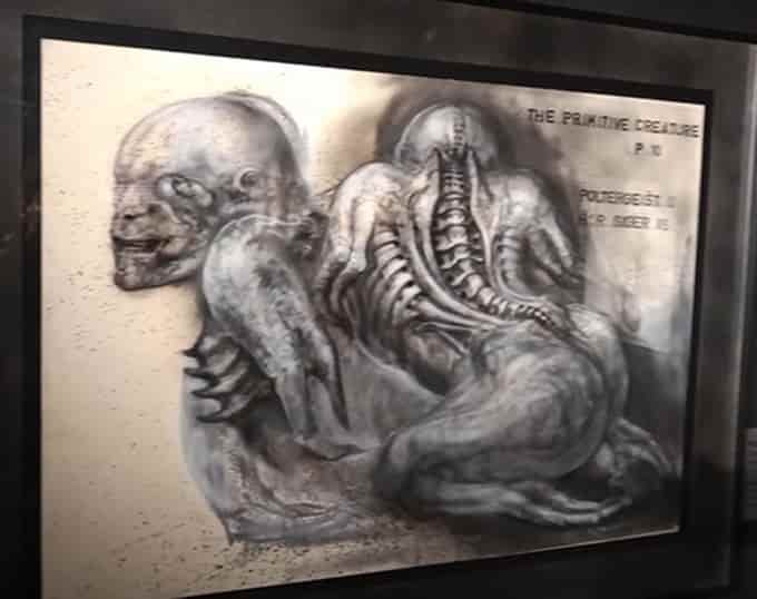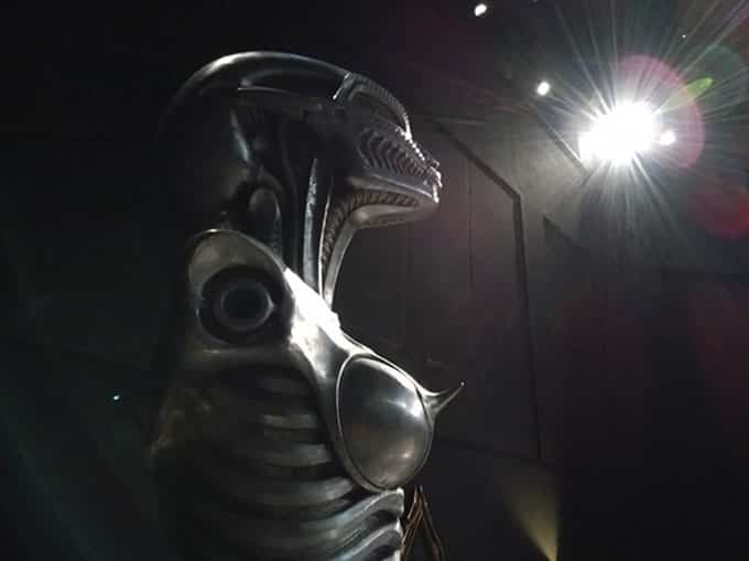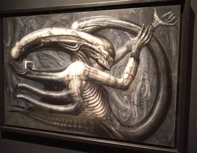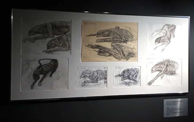 El diseño del Xenomorfo fue elaborado por Giger basado en una de sus pinturas, el Necronom IV, y en la exposición hay bocetos y originales de la criatura que mezcla elementos mecánicos con huesos y músculos, metal con carne, filosos dientes con formas sensuales o hasta sexuales.