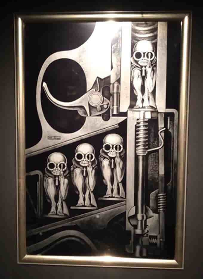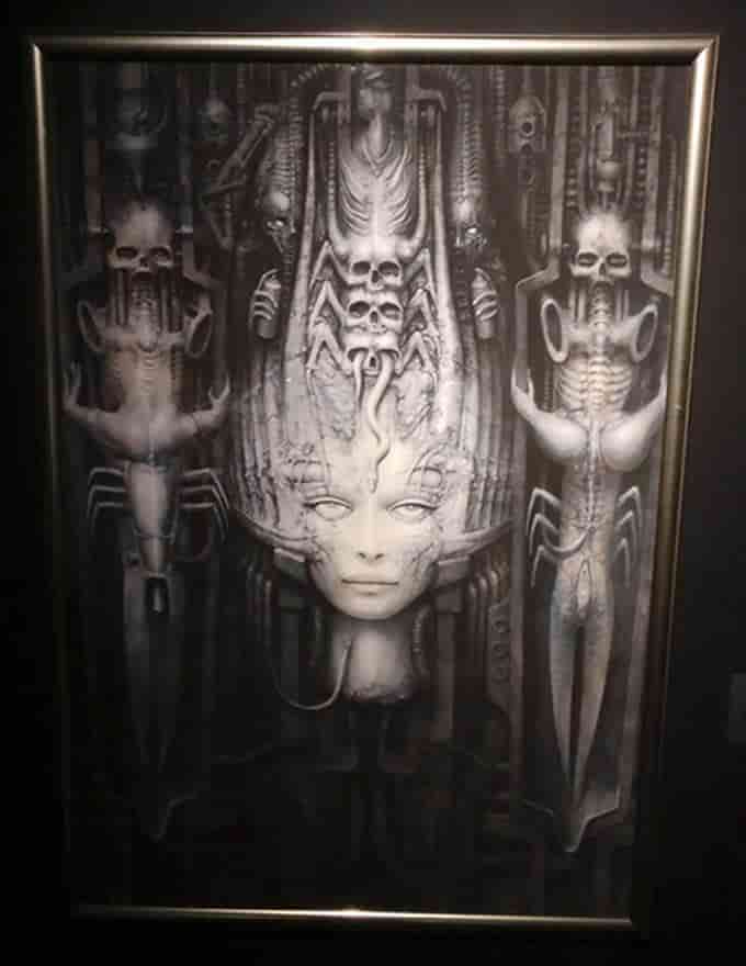 En los tres pisos de una vieja casa de Paseo de la Reforma ambientada en negro y tonos oscuros cientos de personas pudimos admirar bocetos, pinturas, esculturas y fotografías de este artista nacido en Suiza en 1940, y que llegó a los estudios de cine de Hollywood invitado por Salvador Dalí, para diseñar el arte de una versión de la novela Dunas que dirigiría Alejandro Jodorowsky, que no prosperó. Alguien llevó sus diseños a Ridley Scott, ahí se dio el diseño de la nave elaborado por Moebius, y empezó la historia que crearía muchas imágenes pesadillescas marcadas en la mente de fieles de todo el mundo.