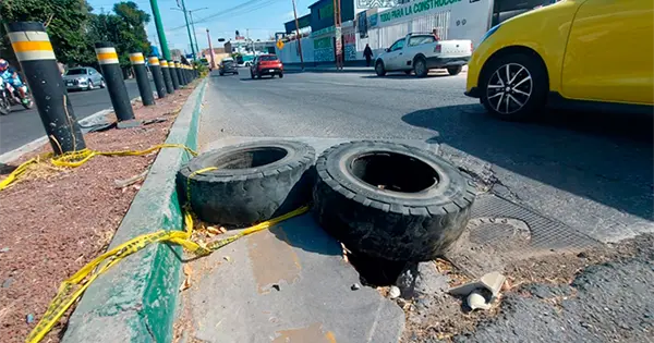 De acuerdo con habitantes y comerciantes del sector, el daño en la carpeta asfáltica se ha ido agravando con el paso del tiempo, generando un riesgo constante para automovilistas y peatones que circulan por esta vialidad de alta afluencia. Ante la falta de intervención oficial, los propios vecinos optaron por delimitar el área de manera improvisada, utilizando llantas, cinta de advertencia y ramas para alertar a los conductores.