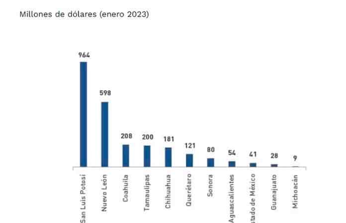 Con 964 millones de pesos en inversiones extranjeras anunciadas para San Luis Potosí durante enero, el grueso de la cual corresponde a la ampliación de la planta de BMW, el estado ocupó el primer lugar en recursos relacionados con el “nearshoring”, reveló un informe del Grupo Bursátil Mexicano (GBM).