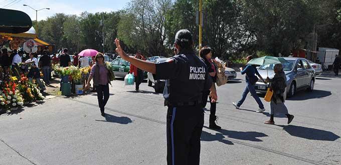 El plan operativo de la DGSPM comprende el despliegue de 38 unidades y la participación 328 elementos tanto de Fuerzas Municipales, como de Policía Vial, quienes además de estar realizando diversas actividades en el exterior de los panteones también harán recorridos en el interior de estos.