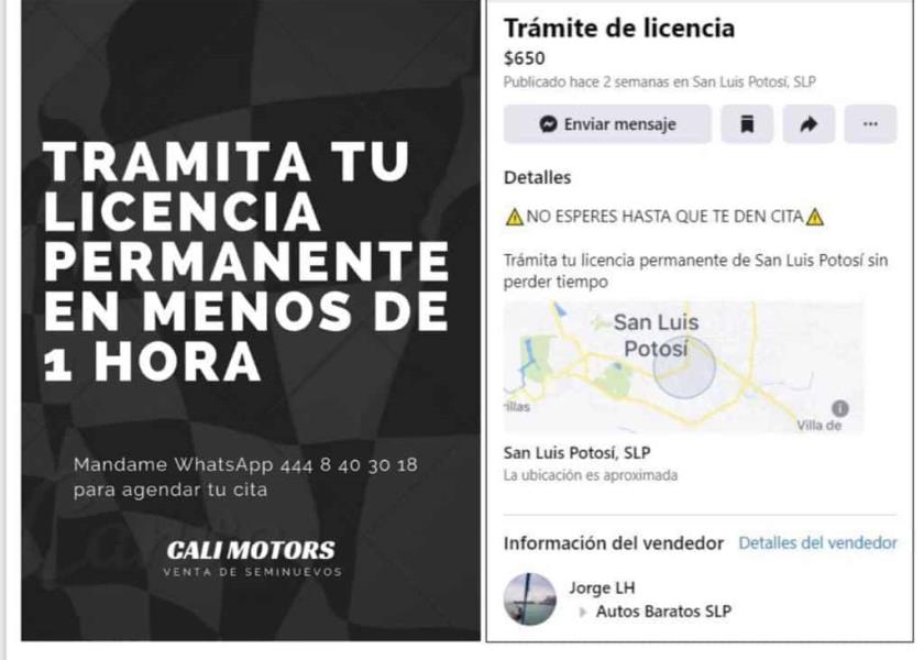 Los perfiles que han surgido en la red social Facebook ofertando estos trámites que son completamente gratuitos son: “Gestoría Vehicular Campos”, “Gestoría Vehicular Centurión S.L.P.”,” Cali Motors Venta de Seminuevos”, “Diego Castillo”, “La Tiendita de Potosinas de Hoy”, “Ale González”, “Mateo Velázquez” entre otros.