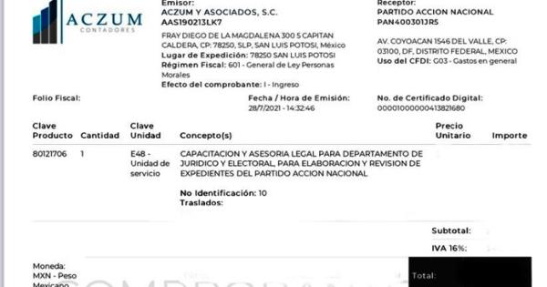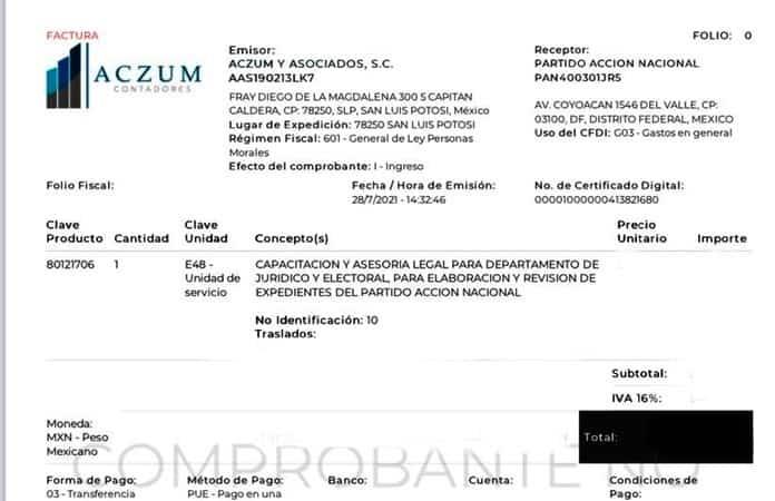 En los gastos revisados del PAN está la factura del despacho ACZUM Consultores, propiedad del hoy tesorero del CDE. Tanto Zumaya Azuara como su socio, José Armando Acosta Sánchez, son primos del diputado federal Xavier Azuara Zúñiga. El despacho se denomina ACZUM Consultores.