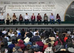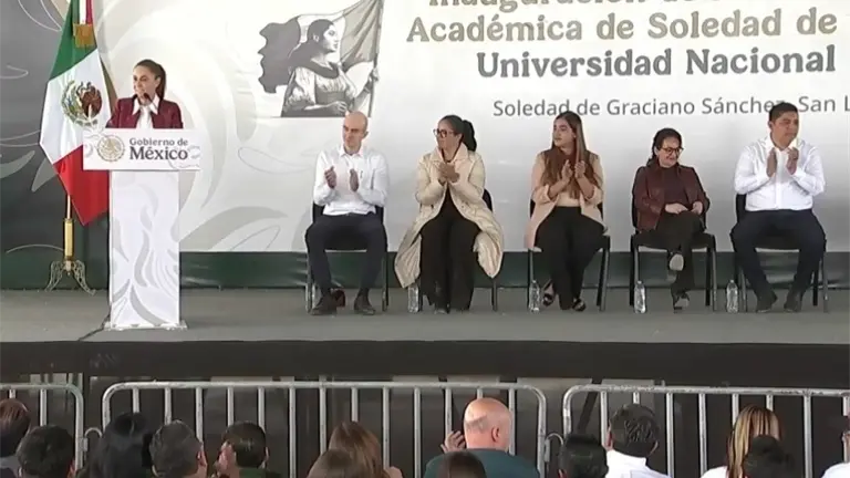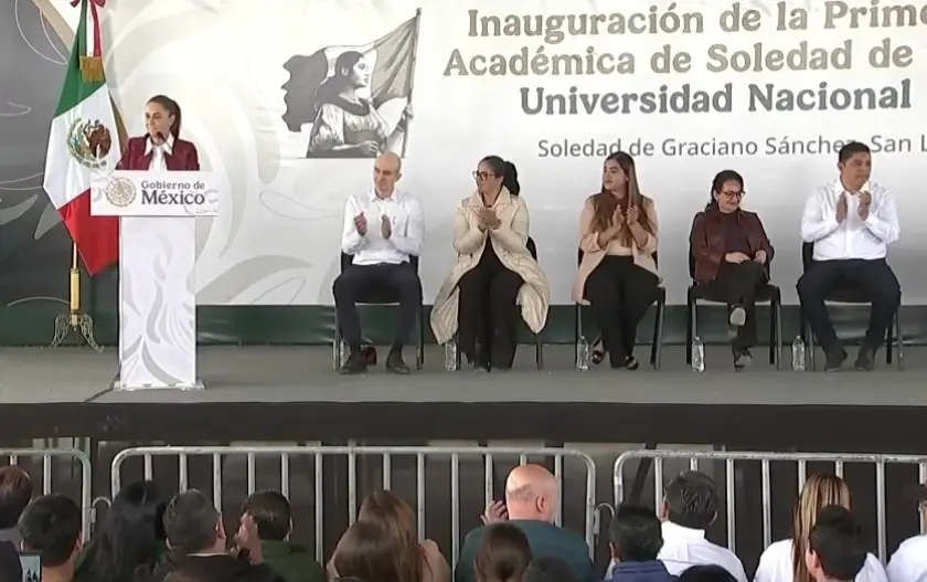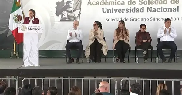 Además, la presidenta repasó las bondades de la nueva Universidad Nacional Rosario Castellanos en Soledad de Graciano Sánchez y anunció la beca "Gertrudis Bocanegra" para todos los universitarios de la institución en todos los planteles del país.
