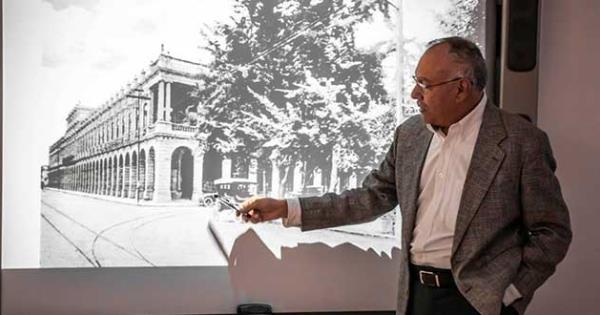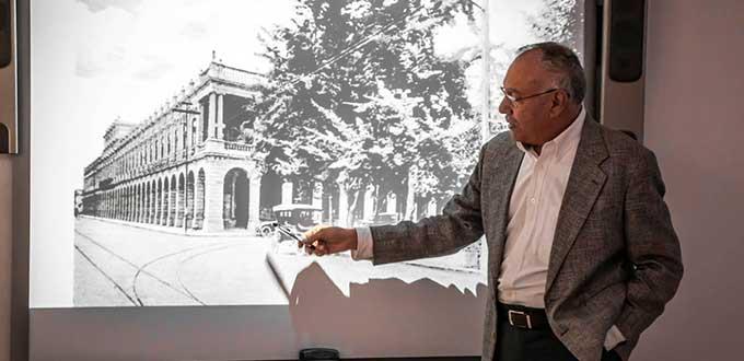 El ponente explicó que el Edificio Ipiña, de estilo neoclásico, fue realizado en cantera de 1906 a 1912 por el ingeniero Octaviano Cabrera Hernández. Originalmente fue diseñado como un espacio para actividades comerciales en el primer piso y como vivienda en la planta alta. El dueño en unos de sus viajes observó las edificaciones de la Rue Rivoli, en París, y pretendió trasladar su arquitectura a San Luis Potosí, por lo que se observa una clara influencia francesa.