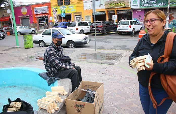 Cada viernes acude a vender sus artesanías a la cabecera municipal de Soledad pero este viernes fue muy afortunado, pues sus juguetes se fueron volando, incluso hubo quienes pagaron mucho más del precio al que él, las comercializa.