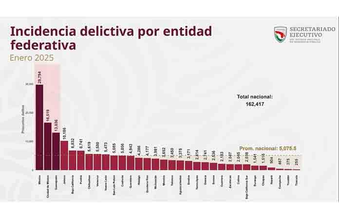 El SNSP reportó un alza general de cinco por ciento en la incidencia delictiva total