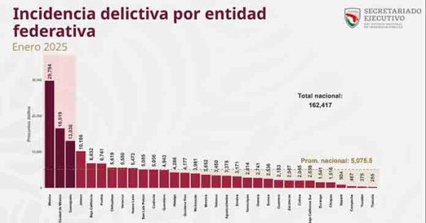 Según los datos del reporte mensual, la entidad potosina registró un total de 5 mil 085 carpetas de investigación relacionadas con diversas modalidades de delito, lo que implica un incremento anual del cinco por ciento con respecto al total registrado en enero del 2024, que fueron cuatro mil 859. La diferencia absoluta fue de 226 delitos más.