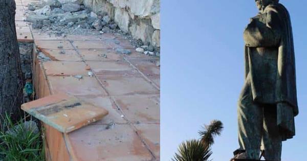 La figura que se inauguró el 21 de marzo de 1996, ahora se observa dañada, ladrones cortaron su calzado y se llevaron la placa colocada en la estructura que sostiene la escultura.