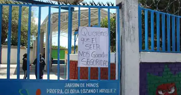 Padres de familia del preescolar Profra. Gloria Lozano Enríquez, ubicado en la colonia La Lomita, tomaron las instalaciones del plantel para exigir a las autoridades educativas una respuesta inmediata ante el grave deterioro que presenta la escuela.
