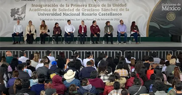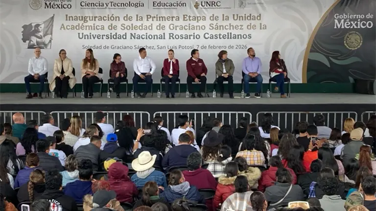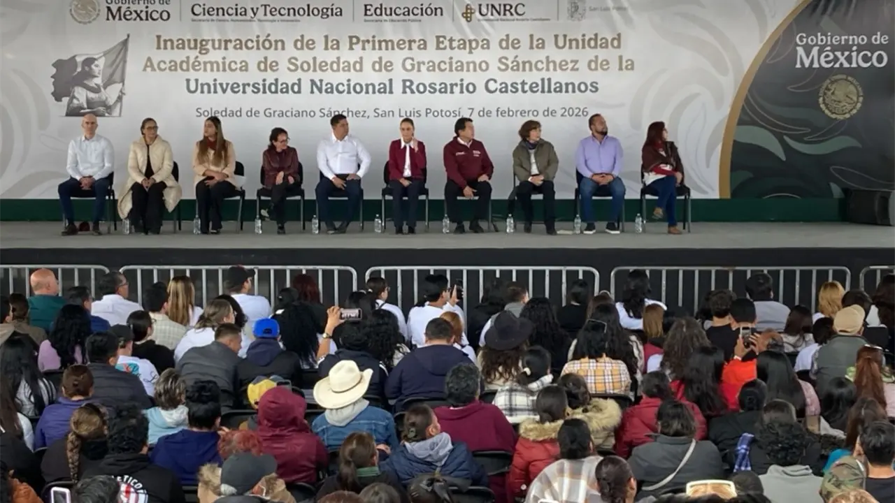 Este sábado, la presidenta de México, Claudia Sheinbaum Pardo, inaugura la Universidad Nacional "Rosario Castellanos" en Soledad de Graciano Sánchez, en San Luis Potosí.