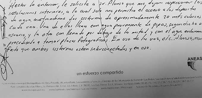 En esta acta circunstanciada, los inspectores de Interapas reconocen que hubo cooperación del personal de la empresa.