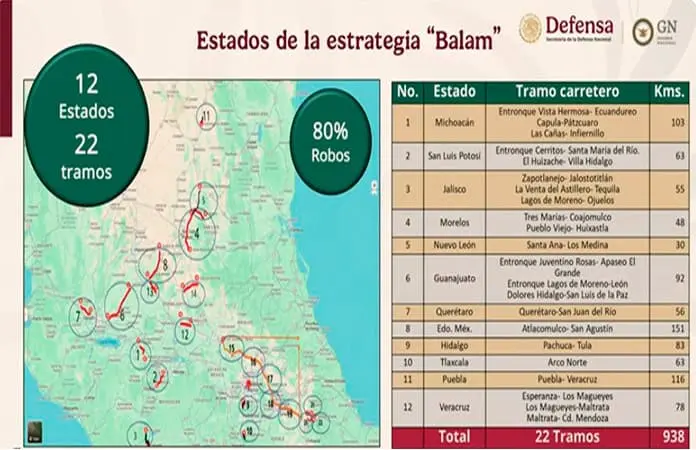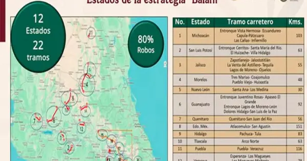 Por otra parte, la mañana de ayer, durante la conferencia matutina de la presidenta Claudia Sheinbaum Pardo, el comandante de la Guardia Nacional, Hernán Cortés Hernández hizo una exposición sobre la estrategia "Balam" para contener el robo carretero.