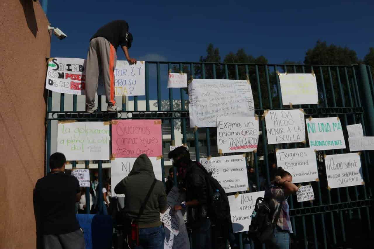 Debido al presunto intento de rapto de una alumna de la Facultad de Psicología, así como a la inseguridad suscitada en las inmediaciones del campus, los alumnos solo permiten la entrada a estudiantes que presentan su credencial.