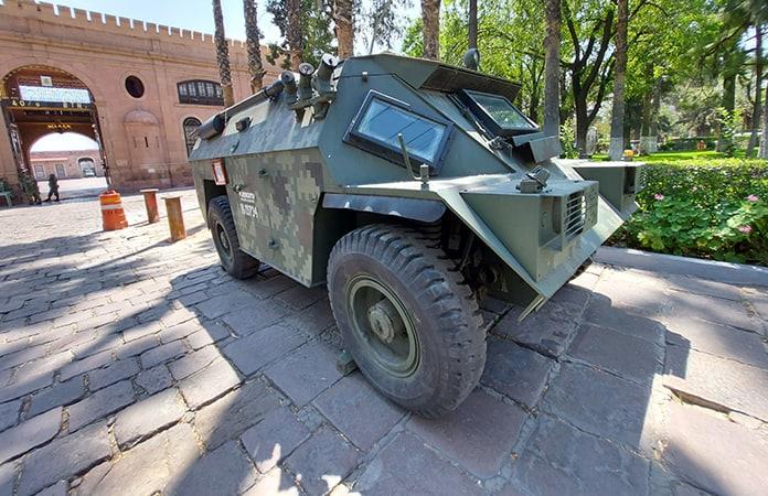 A manera de museo, el acceso principal a las instalaciones de la Doceava Zona Militar, contará con la exhibición de un vehículo de más de 10 mil 700 kilogramos de peso, ya descontinuado, pero similar a los utilizados para lanzar chorros de agua en las manifestaciones.