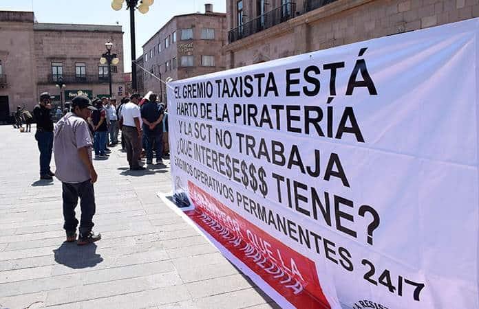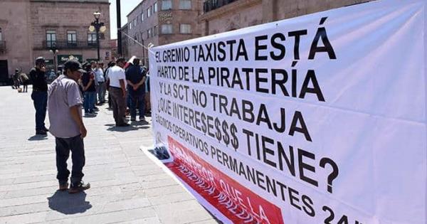 Un contingente de taxistas se manifestó frente al Palacio de Gobierno exigiendo la destitución de Araceli Martínez Acosta, titular de la Secretaría de Comunicaciones y Transportes (SCT).
