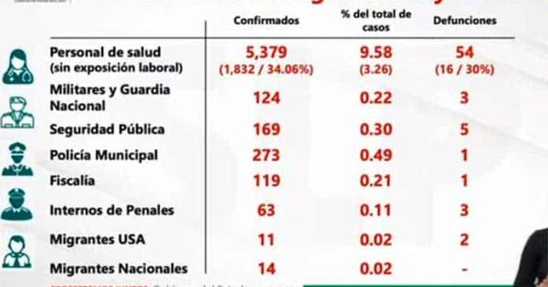 De acuerdo con el reporte semanal, hasta el viernes pasado había 5,267 contagios entre personal de salud y hoy se reportaron 112 casos más, para llegar a 5,379.