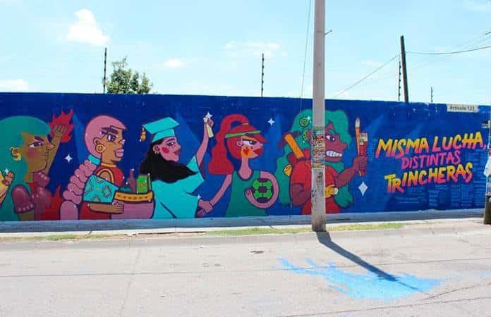 Los cuatro muros seleccionados tienen los siguientes mensajes: “Vivas, diversas y bravas”, “Ármate Poderosa”, “Abrazando el fuego de mi libertad” y “Misma lucha distintas trincheras”, respectivamente.