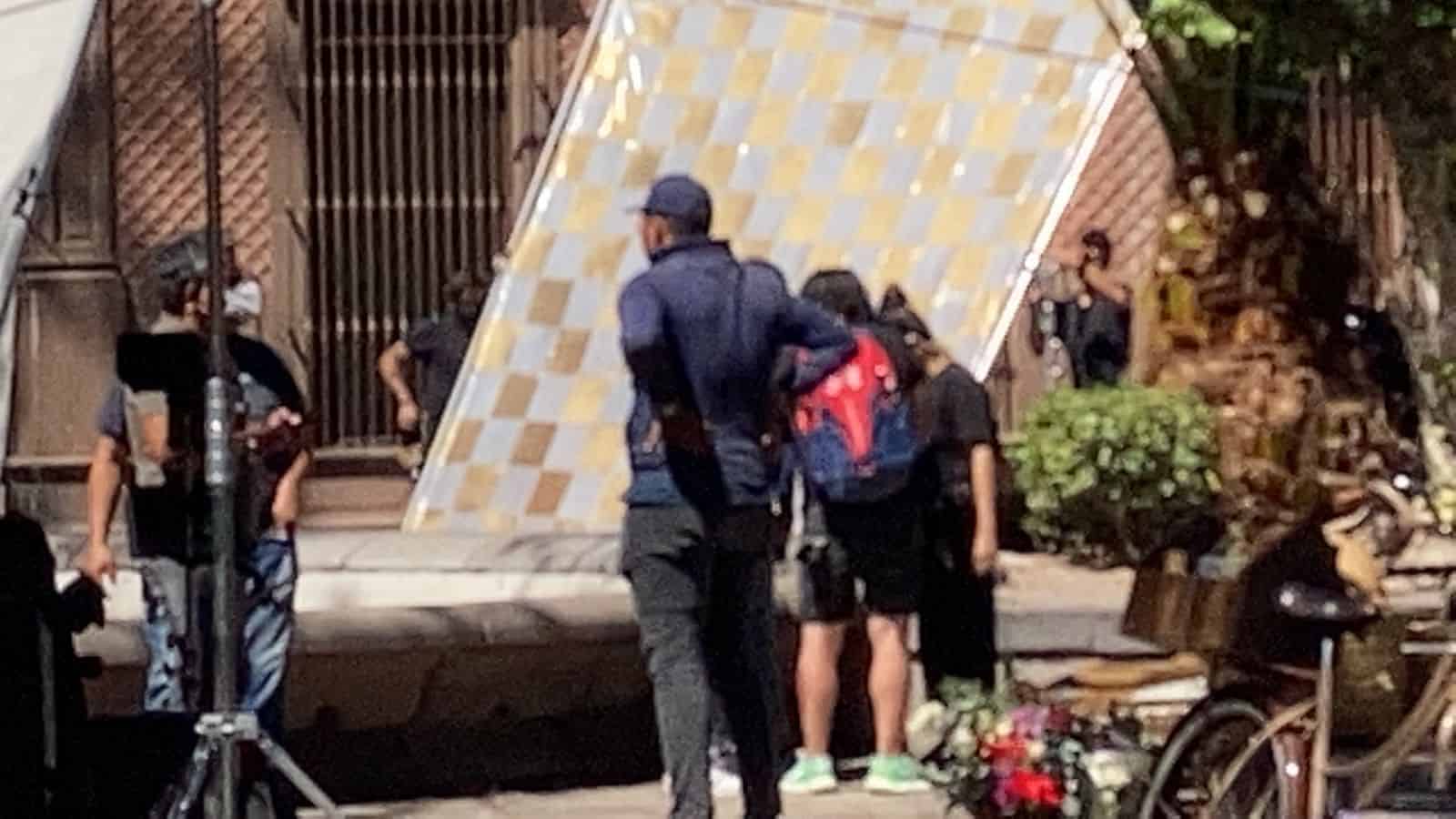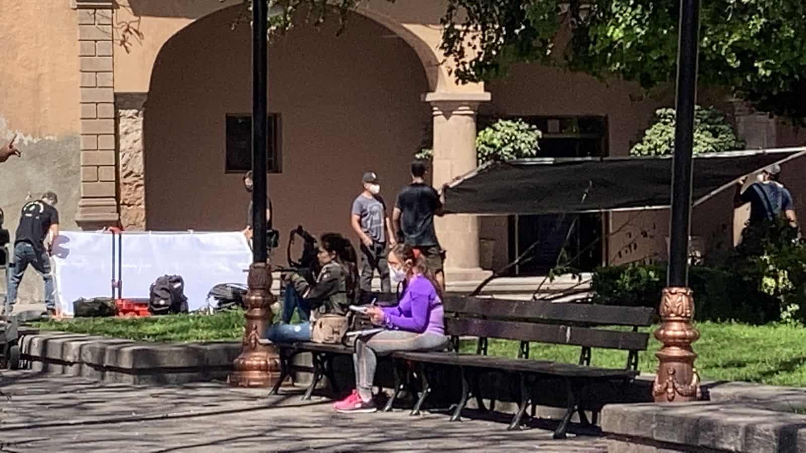 En el jardín de San Francisco se observó la colocación de pantallas y pruebas de cámaras al lado de la fuente, por lo que se prevé que en ese sitio se graben algunas escenas.