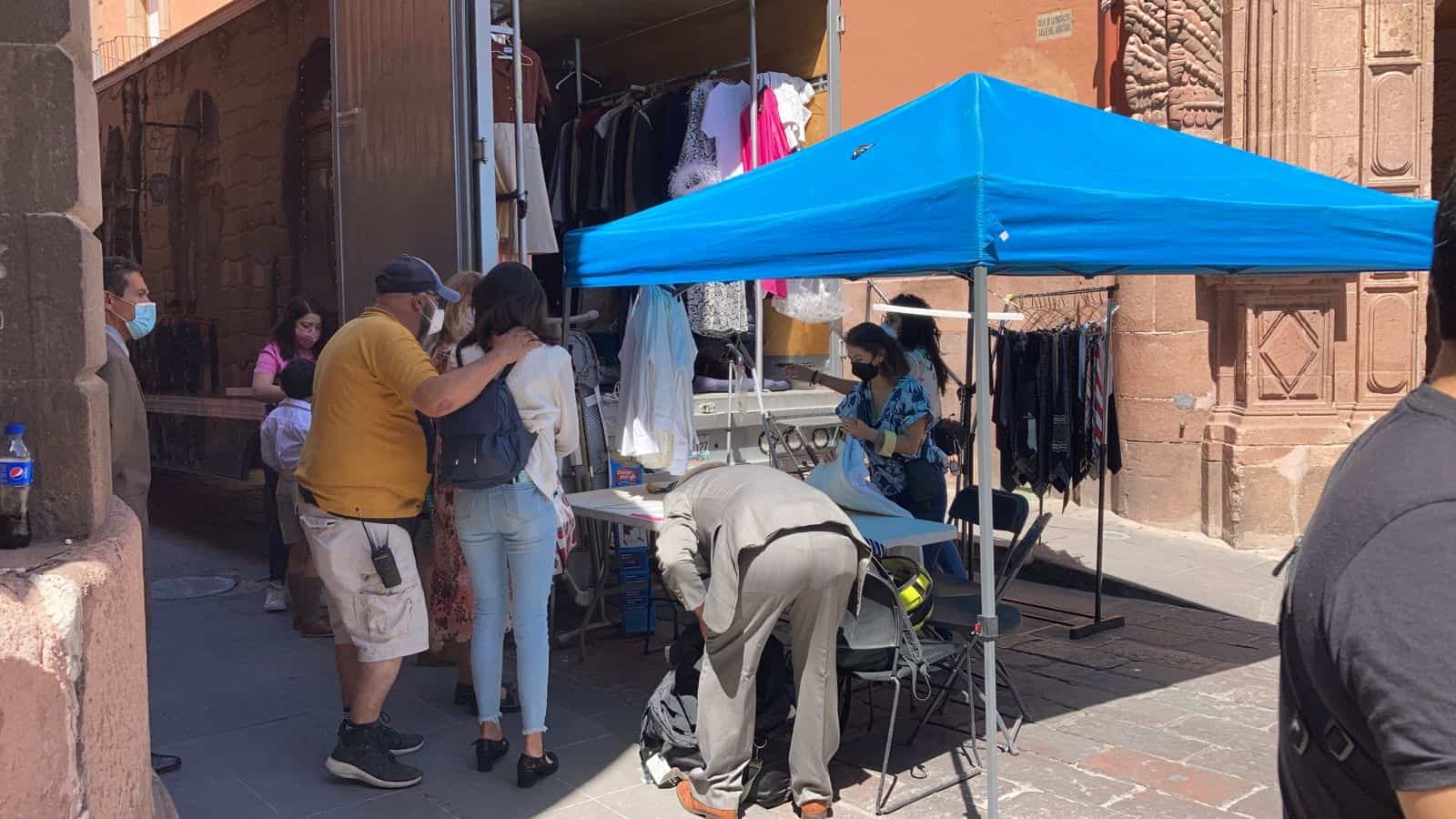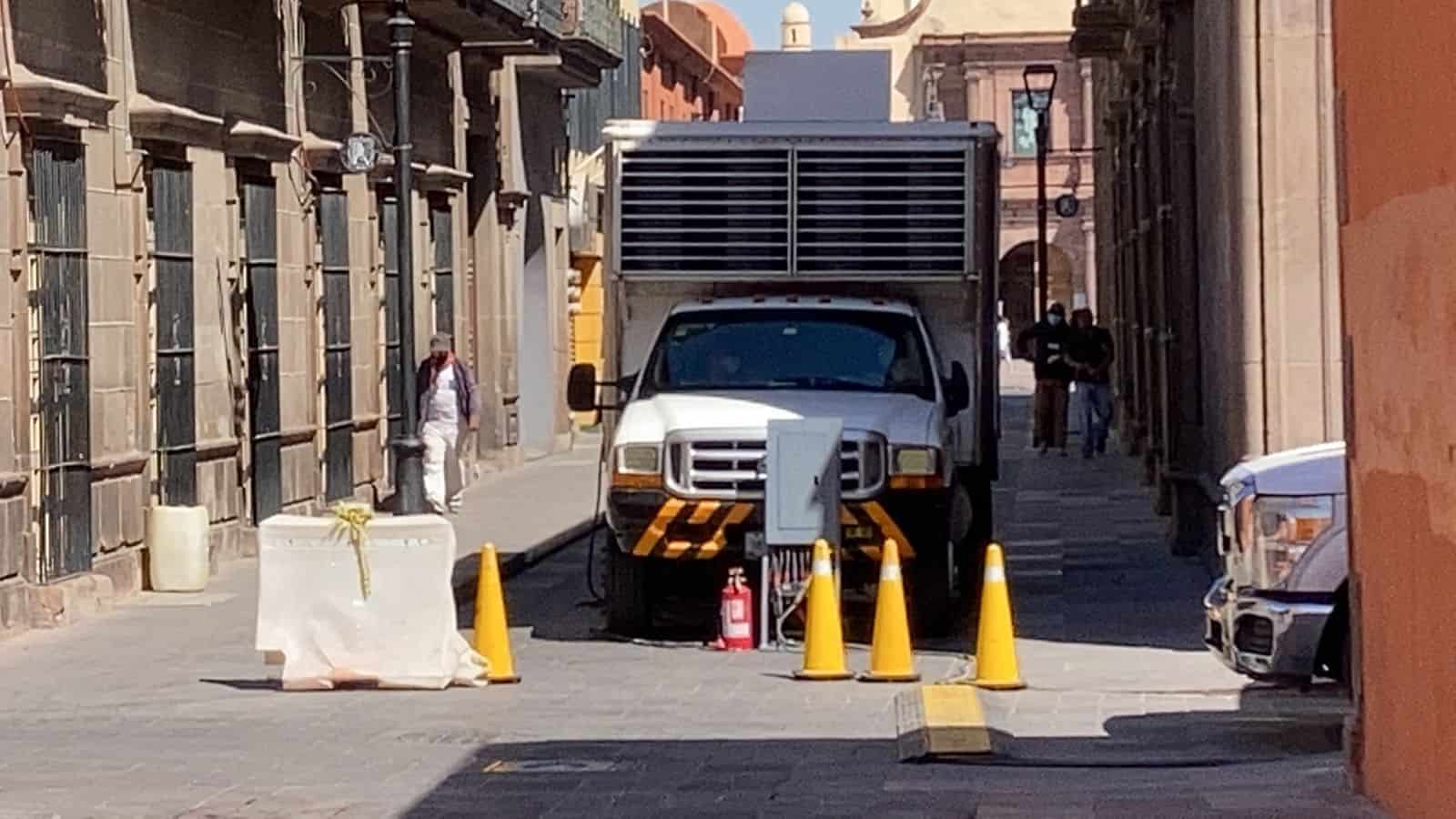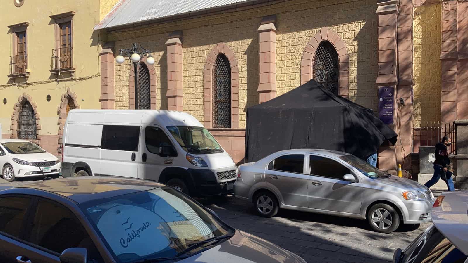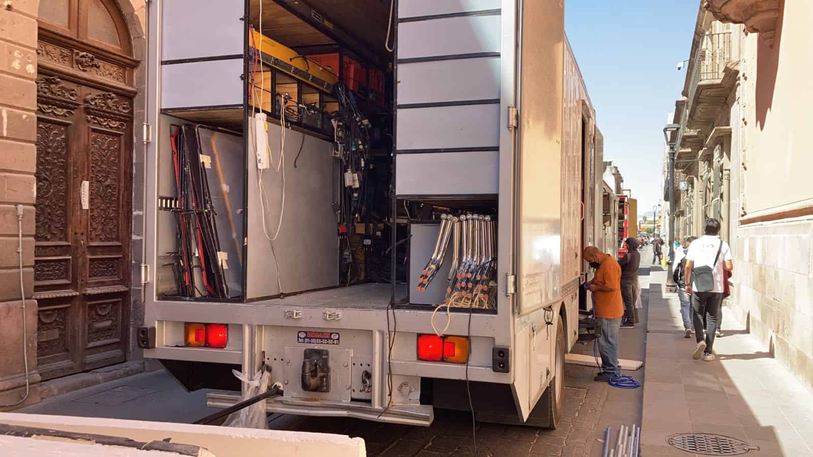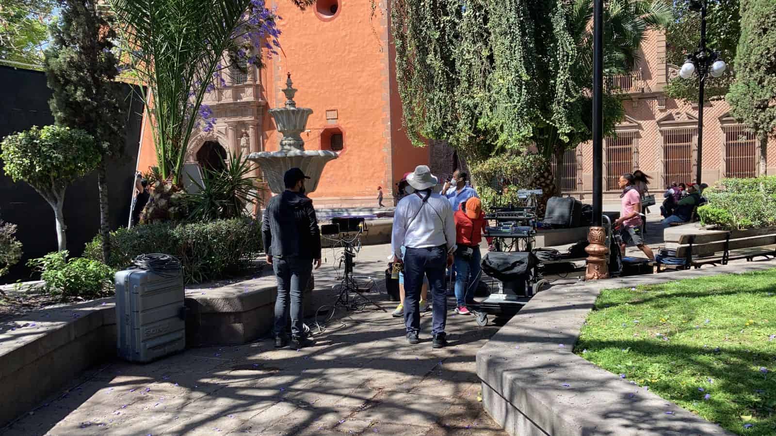Sobre la calle Díaz de León se estacionó otro cámper, mientras que en las calles Madero y Allende, atrás de Palacio de Gobierno, se ubicaron dos camionetas y un tercer vehículo para cambios de ropa, a donde acudieron principalmente jóvenes, tanto hombres como mujeres, que participarán como extras en la grabación.