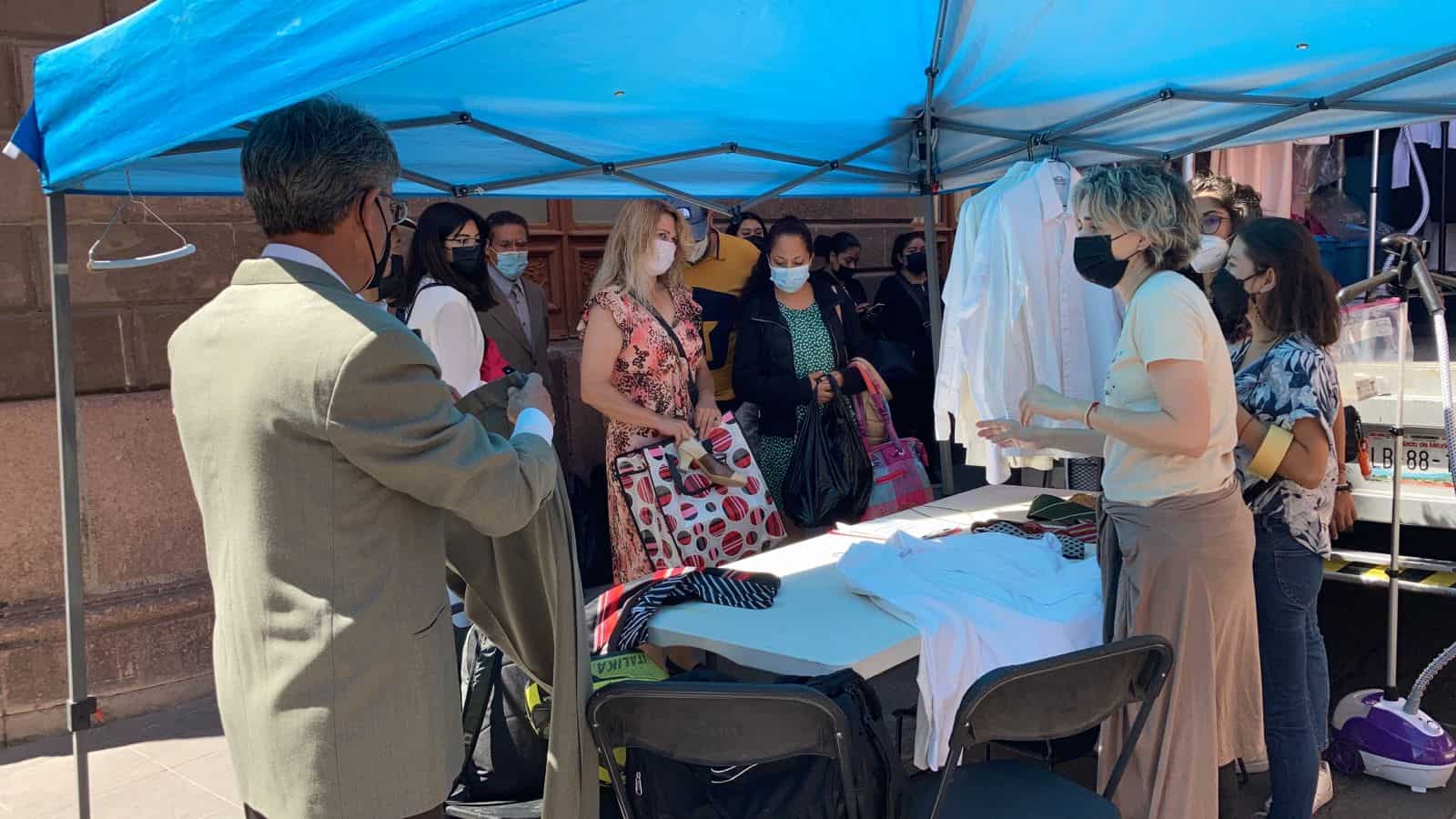 En la calle Galeana se estacionaron cuatro unidades, entre ellas una para cambio de ropa, así como para la provisión de alimentos.