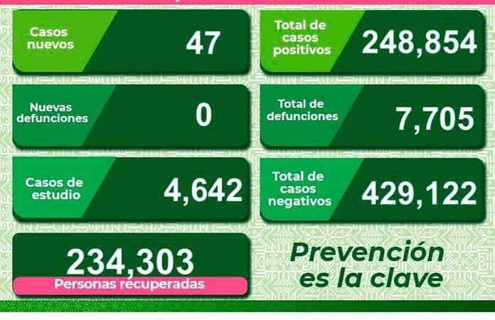 Los casos Covid-19 en el Estado para este 6 de mayo son de 47 nuevos contagios, confirmando el Comité Estatal para la Seguridad en Salud y los Servicios de Salud 248 mil 854 casos totales de esta enfermedad.