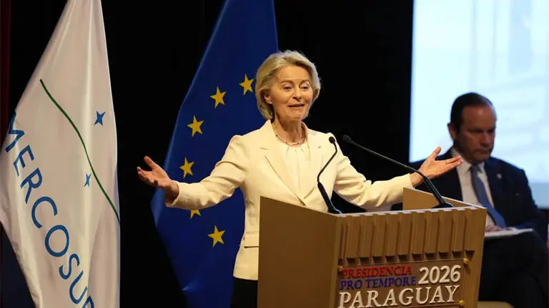 "Europa es el segundo socio comercial más importante del Mercosur y el mayor inversor extranjero en la región", dijo Von der Leyen. Agregó que "este acuerdo eliminará aranceles y otras barreras comerciales y abrirá la contratación pública", así como "proporcionará un marco normativo claro para fomentar la inversión y el comercio".