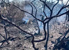 Combaten extenso incendio forestal en Mexquitic de Carmona