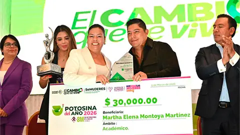 En el marco del Día Internacional de la Mujer, que habrá de conmemorarse el próximo 8 de marzo, el gobernador del estado Ricardo Gallardo Cardona encabezó este día la ceremonia de premiación del certamen "Potosina del Año, Mujeres sin Límites 2026", donde reconoció el talento, liderazgo y compromiso de las mujeres por impulsar el bienestar y desarrollo en cada una de las cuatro regiones de San Luis Potosí.