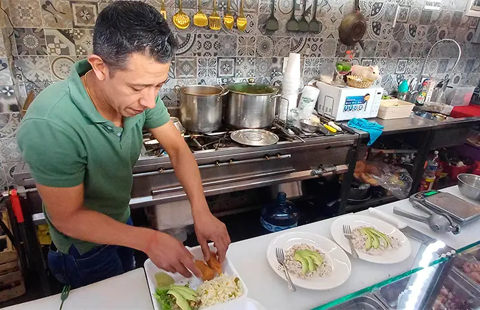"La Mojarrita" colocó su negocio hace ya algunos años en el interior del Mercado Hidalgo y desde entonces, poco a poco acuden con él para consumir alimentos del mar.