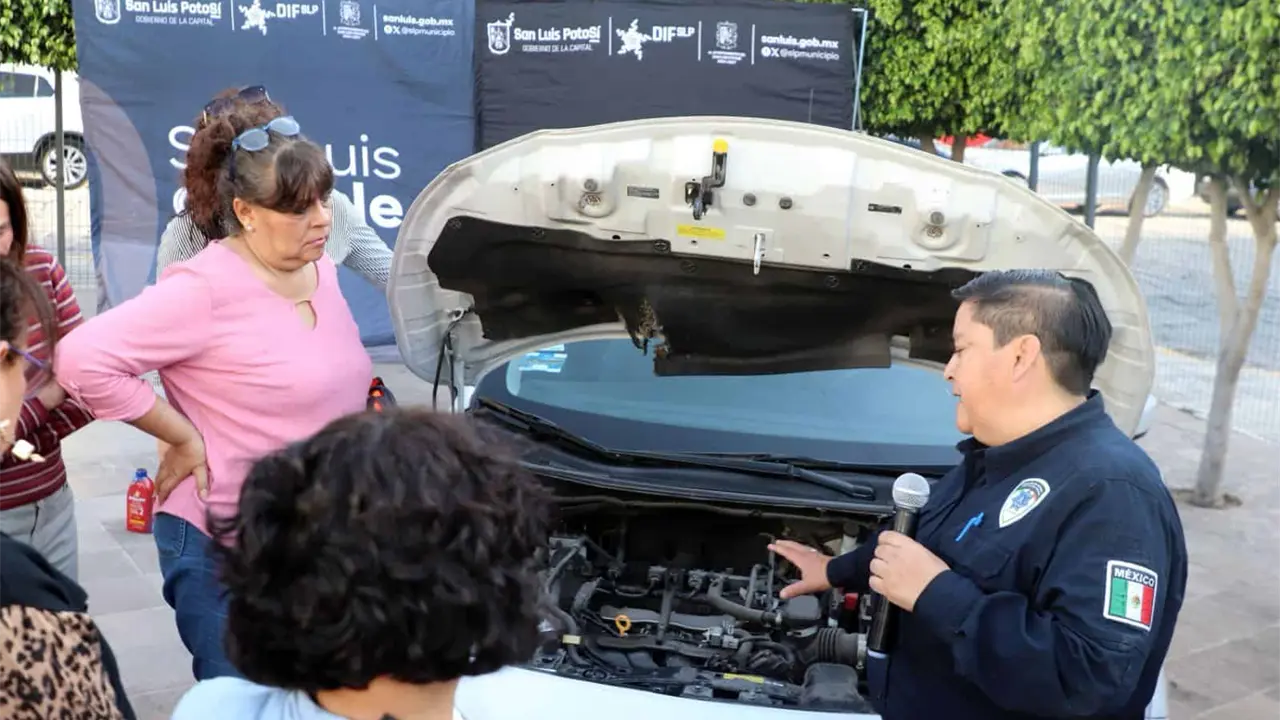 El DIF Municipal de San Luis Potosí, en coordinación con la Secretaría de Seguridad y Protección Ciudadana (SSPC), realizó un taller dirigido a mujeres para enseñar conocimientos básicos sobre el funcionamiento y mantenimiento de vehículos.