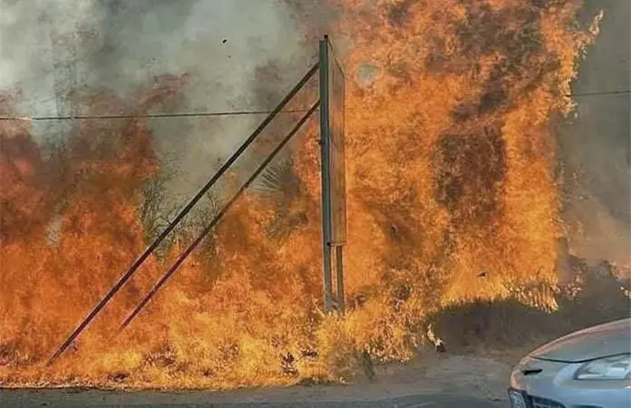 Según los cálculos del comandante del Cuerpo de Bomberos, Adolfo Benavente Duque, las llamas consumieron más de 5 hectáreas de arbustos y pastizales.