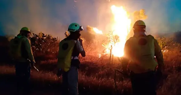 Según los datos del Monitor de Tarjeta Diaria de Incendios Forestales de la Conafor, el siniestro de Villa de Reyes mantiene una afectación preliminar de 95 hectáreas y un total de 24 combatientes, con un 90 % liquidado hasta este sábado.