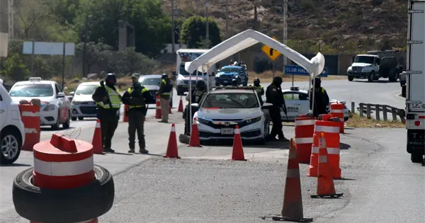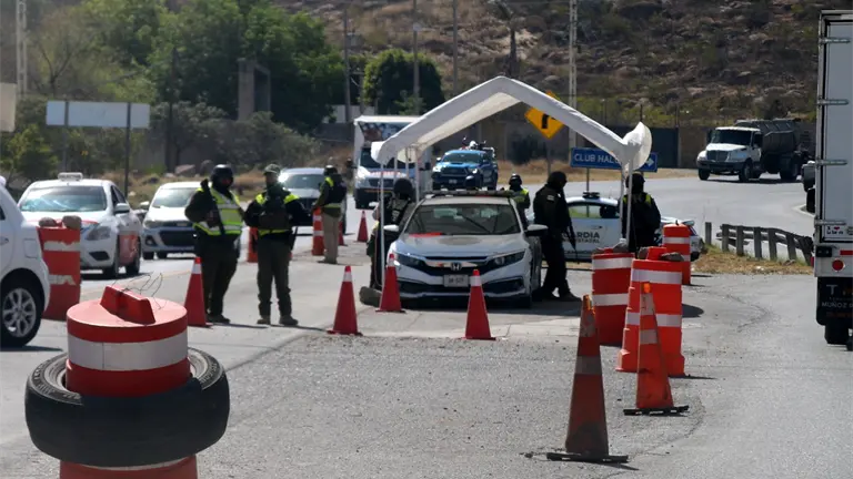Elementos de la Guardia Civil Estatal incrementaron su presencia en el retén instalado sobre la carretera a Guadalajara, a la altura del COBACH 26.