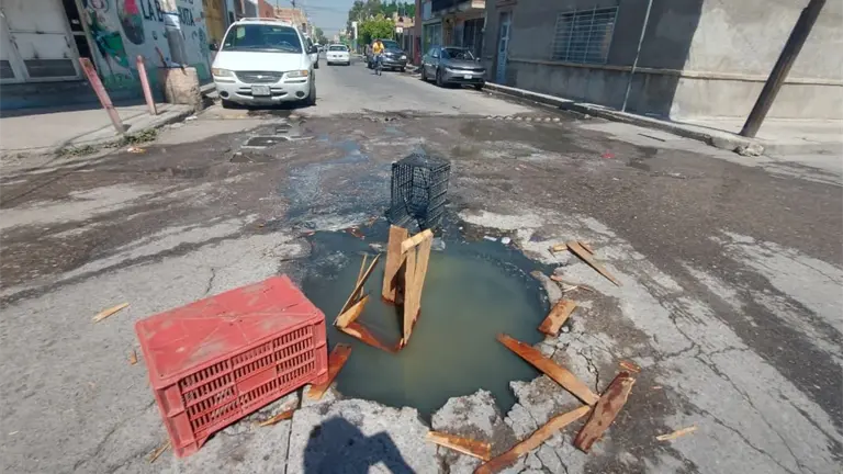 El daño en drenaje afecta la calle Zamarripa y preocupa a vecinos por riesgos sanitarios