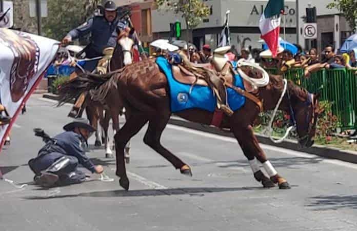 El jinete cayó de manera aparatosa y el caballo continuó su camino sin lesionar a más personas, fue detenido metros más adelante por elementos del Ejército Mexicano que impidieron que se fuera sobre la gente y el incidente no pasó a mayores.