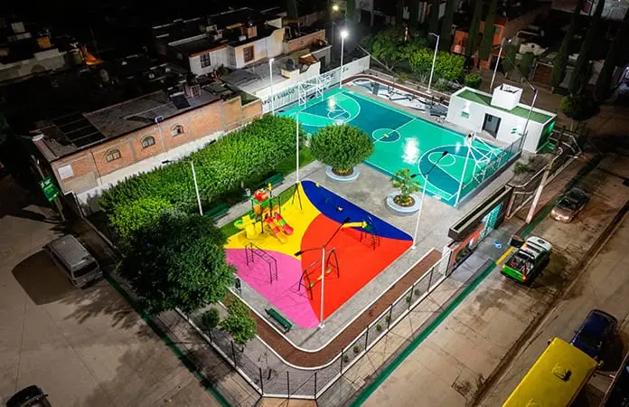 En este Parque, ubicado muy cerca de la presidencia municipal, se construyó una cancha multifuncional, trotapista, área de juegos infantiles, gimnasio al aire libre, andadores peatonales, zonas de descanso y sanitarios, además de contar con cercado y moderna iluminación LED para garantizar la seguridad de las y los visitantes en un espacio de más de mil 200 metros cuadrados que se construyó con una inversión superior a los 4.2 millones de pesos, provenientes del Fondo de Fortalecimiento Municipal.