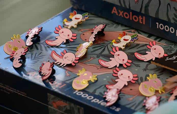 Explicó que la marca surgió hace aproximadamente un año, con la iniciativa de fabricar productos que fueran sustentables hacia el medio ambiente, por lo que lanzaron playeras hechas de material reciclados, 50% poliéster, 50% algodón con el emblema del ajolote, después se fueron agregando calcetas, tazas, rompecabezas, estampas y peluches.